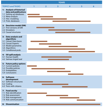 The partnership of the project include experts of emission modeling, security supply modeling and logistic solutions modeling, interdisciplinary risk analysis, policy design, economic research, insurance policy, legislation and risk communication (see consortium). The integration of knowledge in ILVES approach involves a great deal of interaction among all these disciplines, and to this end the information will be collected into one web based platform. We have a high number of letters of commitment from outsiders: City of Helsinki, Ministry of Traffic and Communication, Environment Ministry, The Waterway Association of Finland, the Finnish Border Guard, CISRO Australia.
