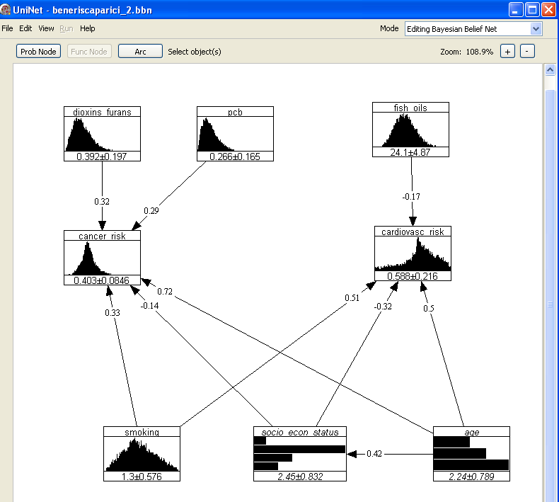 Bayesian belief networks are used in probability theory to describe complex causal structures that contain uncertain variables. Therefore they are very useful in describing real-life situations where the aim is to estimate and predict how certain actions affect outcomes of interest through a causal chain. Assessment of the benefits and risks posed to a consumer via food as a result of the implementation of various policies is a good example of its possible application. Other fields where this methodology has been used include medical treatment of severe infections, functional safety of programmable electronic systems, and cellular network diagnostics. There exists both commercial software for utilisation of Bayesian belief networks, and also open-source programs such as Bayes Network Toolbox for Matlab. Scientific interest in these methods has been significant especially in statistics and computer science. However, they have not yet been widely used in environmental health risk analysis.