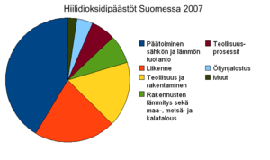 Taulukko 1. Hiilidioksidipäästöt Suomessa 1990, 1995, 1997–2007 (miljoonaa t CO2-ekv.)[1]