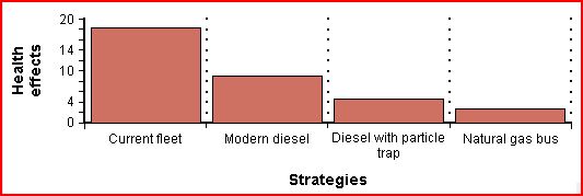- The difference in the excess mortality between natural gas buses and the presentdiesel engines with proper trapping systems is not large. Thus it is questionable whether the costs and alternative risks associated with the more complicated fuel storage and delivery systems for compressed natural gas would be covered by the marginal health benefits from the lower PM emissions.