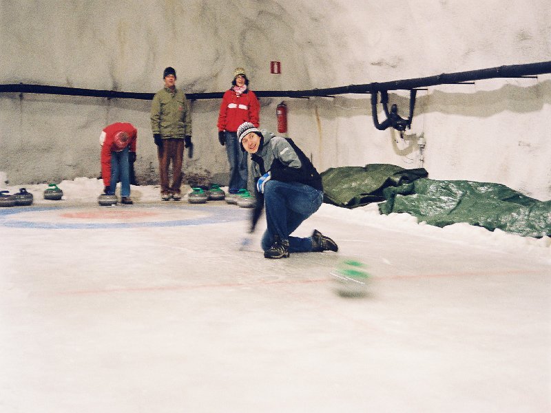 Curling in Kymppi Areena from 11 to 13. The temperature inside the hall -5 degrees, so normal winter outdoor clothing wass suggested. The total cost for whole group was 150€.