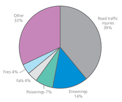 - Unintentional injuries are a leading cause of death in young people aged 0–19 years, with road traffic injuries contributing the largest burden followed by injuries occurring in the home and leisure settings. Inequalities between countries are extreme. A substantial reduction in traffic-related deaths over the last two decades shows that these injuries and deaths are preventable.