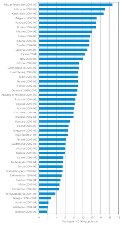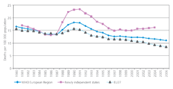 - European detailed mortality database (DMDB). Copenhagen, WHO Regional Office for Europe, 2009 (accessed 8 February 2010).