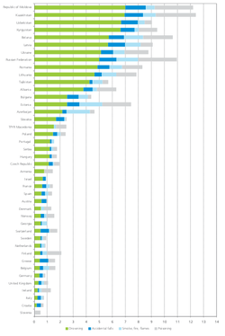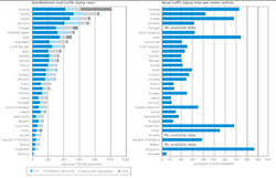 Death and injury rates from road traffic injuries depend on both driving-related factors, such as the number of vehicles, driving style and risk perception, the existence of legislation and the strength of its enforcement, road design and maintenance, and factors unrelated to driving, including emergency response services, mobility options and socioeconomic conditions. The overall death rates need, therefore, to be considered within this wider context. When this is done, it strongly modifies the ranking of countries. Kyrgyzstan, for example, reports the second lowest injury rate from road traffic injuries per 100 000 population but the highest injury rate per 100 000 motor vehicles. Furthermore, for many countries the data on death and injury rates do not correlate: the Russian Federation, which has the highest death rate related to road traffic injuries in young people in the Region reports a relatively modest road traffic injury rate in the same group. Variations in reporting patterns, differences in definitions, and inconsistencies are likely to contribute to at least some of the discrepancies that exist between as well as within national data.[1]